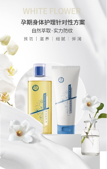 推荐使用十月天使白池花舒纹系列防护修护产品,针对性预防女性妊娠纹,助力实现中国孕妈妈产后无痕的心愿。